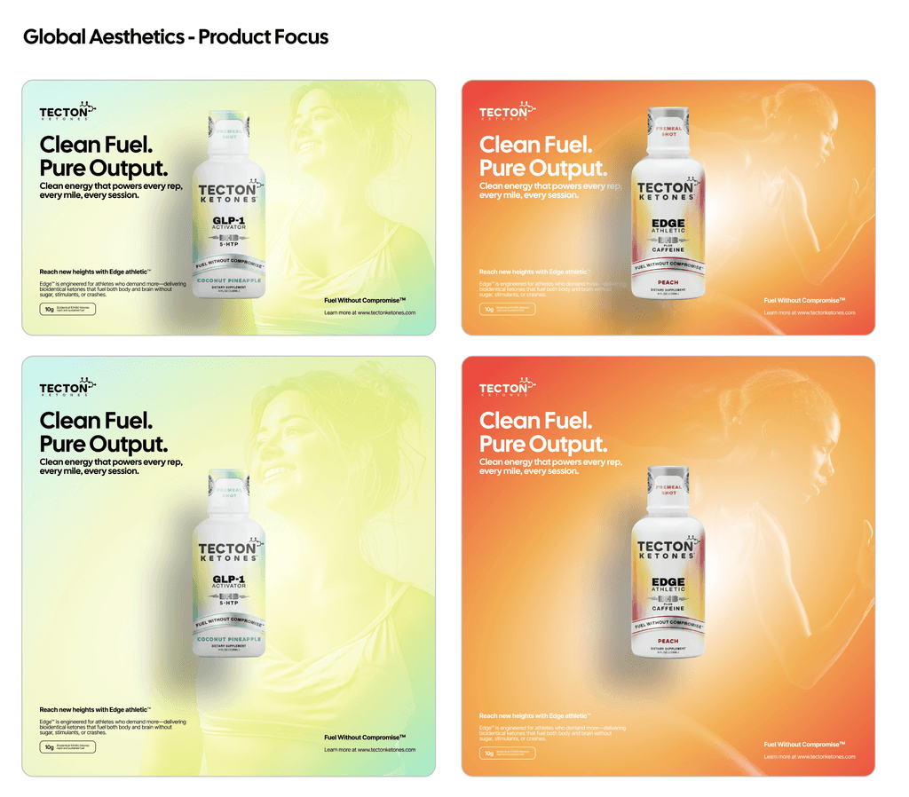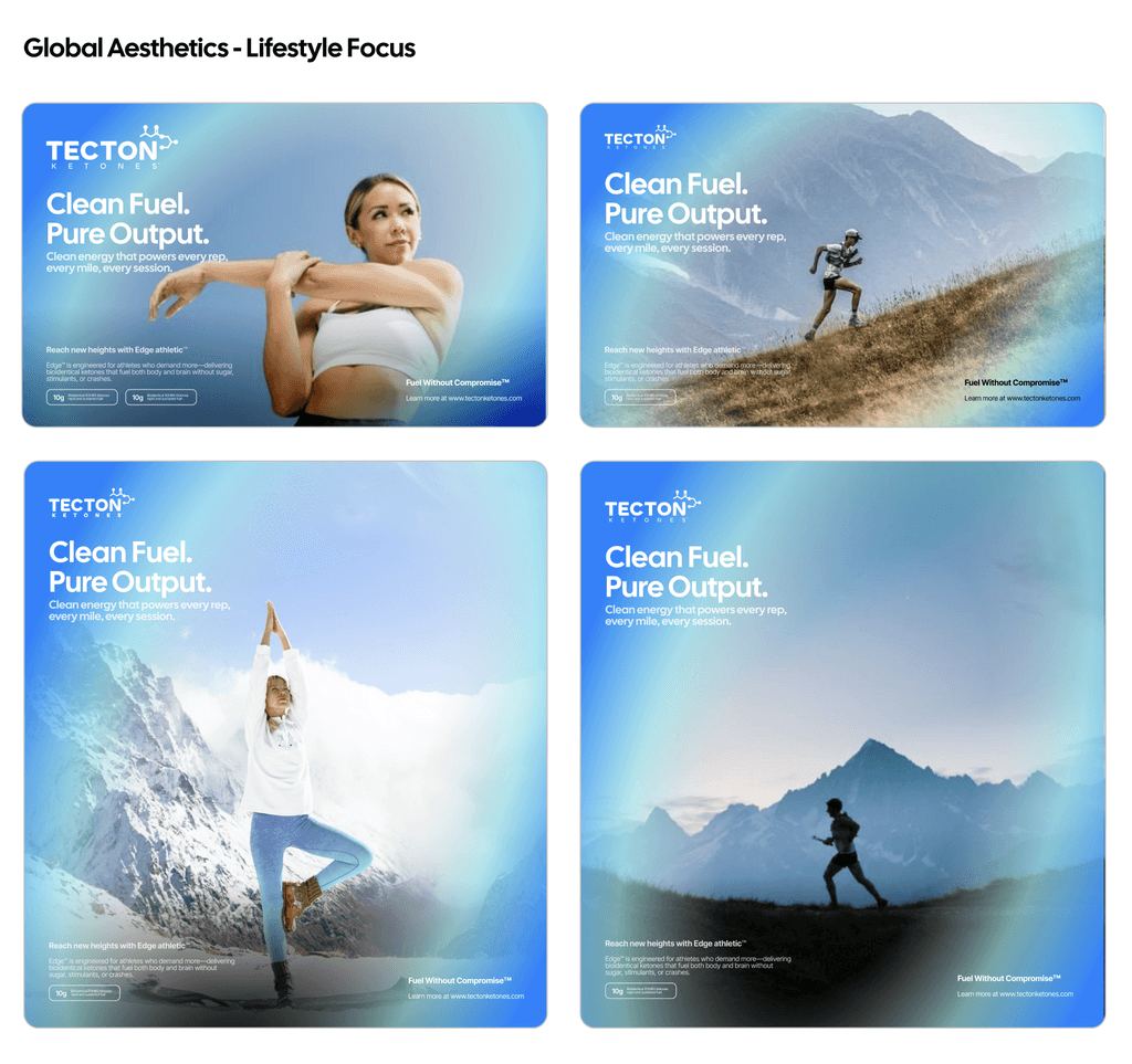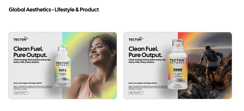 Our photography captures the essence of Tecton — bold, focused, and rooted in science. Use visuals that show real people in real moments: training, recovering, thinking, and thriving. Prioritize natural light, sharp contrast, and powerful compositions that highlight strength, clarity, and the human potential our products are built to unlock.