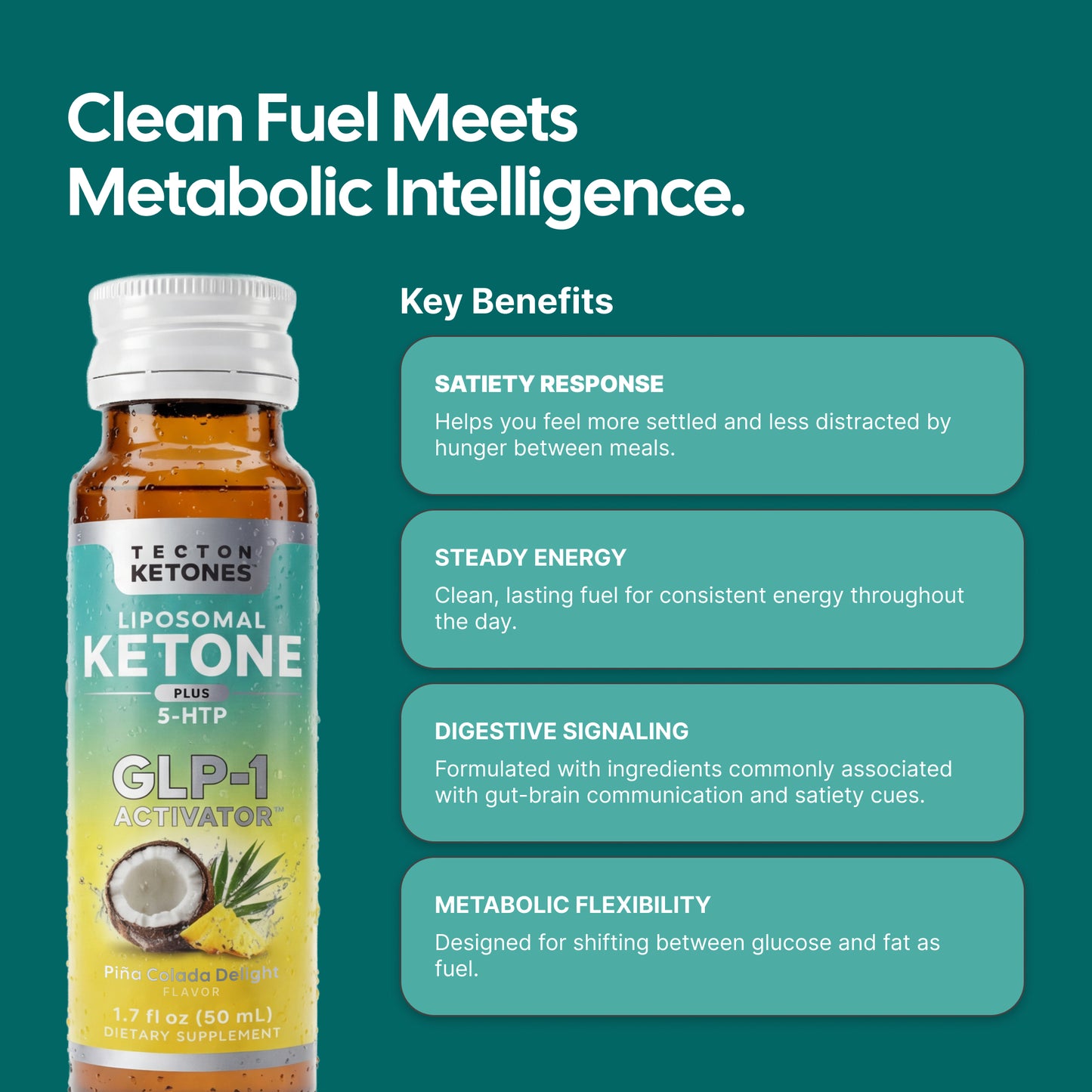 Targeted metabolic support for appetite awareness and glucose metabolism. Combines bioidentical ketones with 5-HTP and prebiotic fiber to support metabolic flexibility and balanced energy.