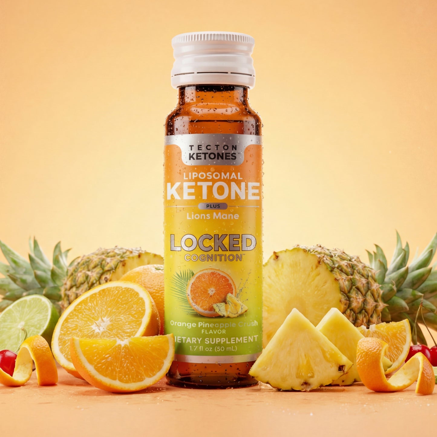 Locked Cognition is a ketone cognition support shot formulated with liposomal R3HBG, Alpha GPC, and Lion’s Mane to support mental clarity, memory, and sustained focus. Liposomal delivery improves the consistency of bioidentical ketone fuel to help maintain stable brain energy during extended cognitive demand.